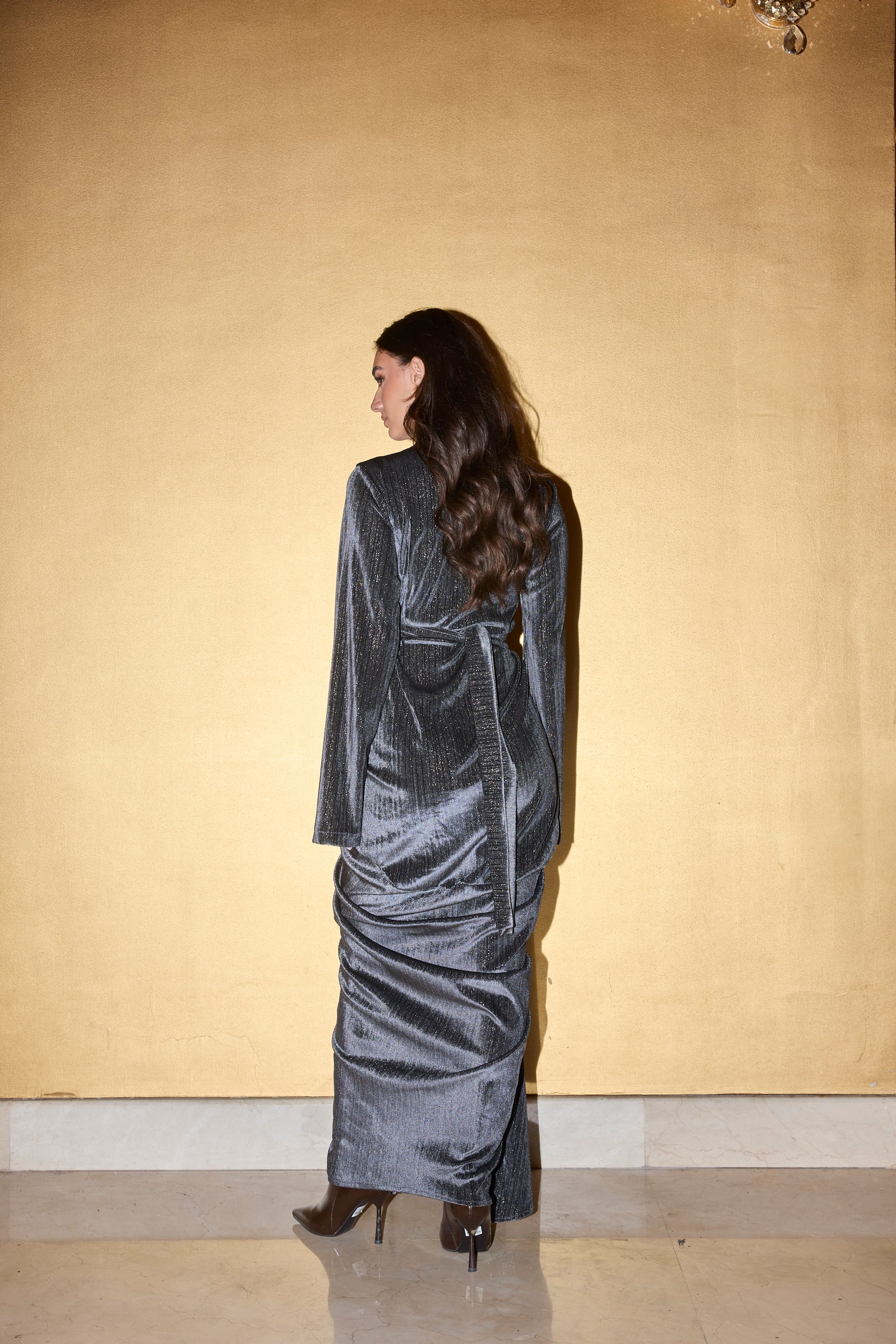 The ray wrap kaftan is both versatile and flattering, making it the perfect addition to your wardrobe. Dress it down for a casual look or dress it up for a more upscale style. Its wrap design makes it easy to adjust for a comfortable fit. Its timeless grey color adds a touch of elegance to any outfit.