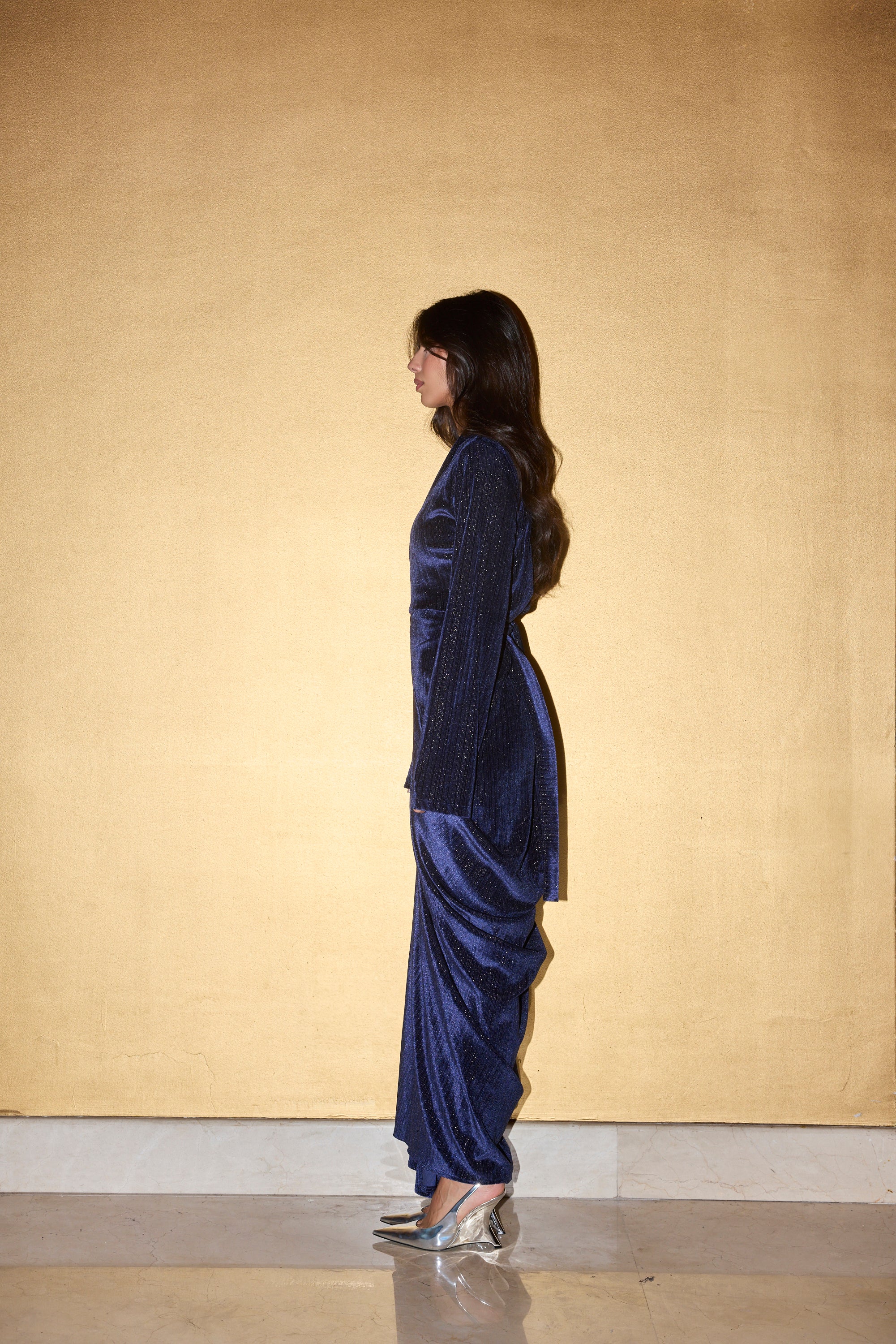 The ray wrap kaftan is both versatile and flattering, making it the perfect addition to your wardrobe. Dress it down for a casual look or dress it up for a more upscale style. Its wrap design makes it easy to adjust for a comfortable fit. Its timeless navy color adds a touch of elegance to any outfit.