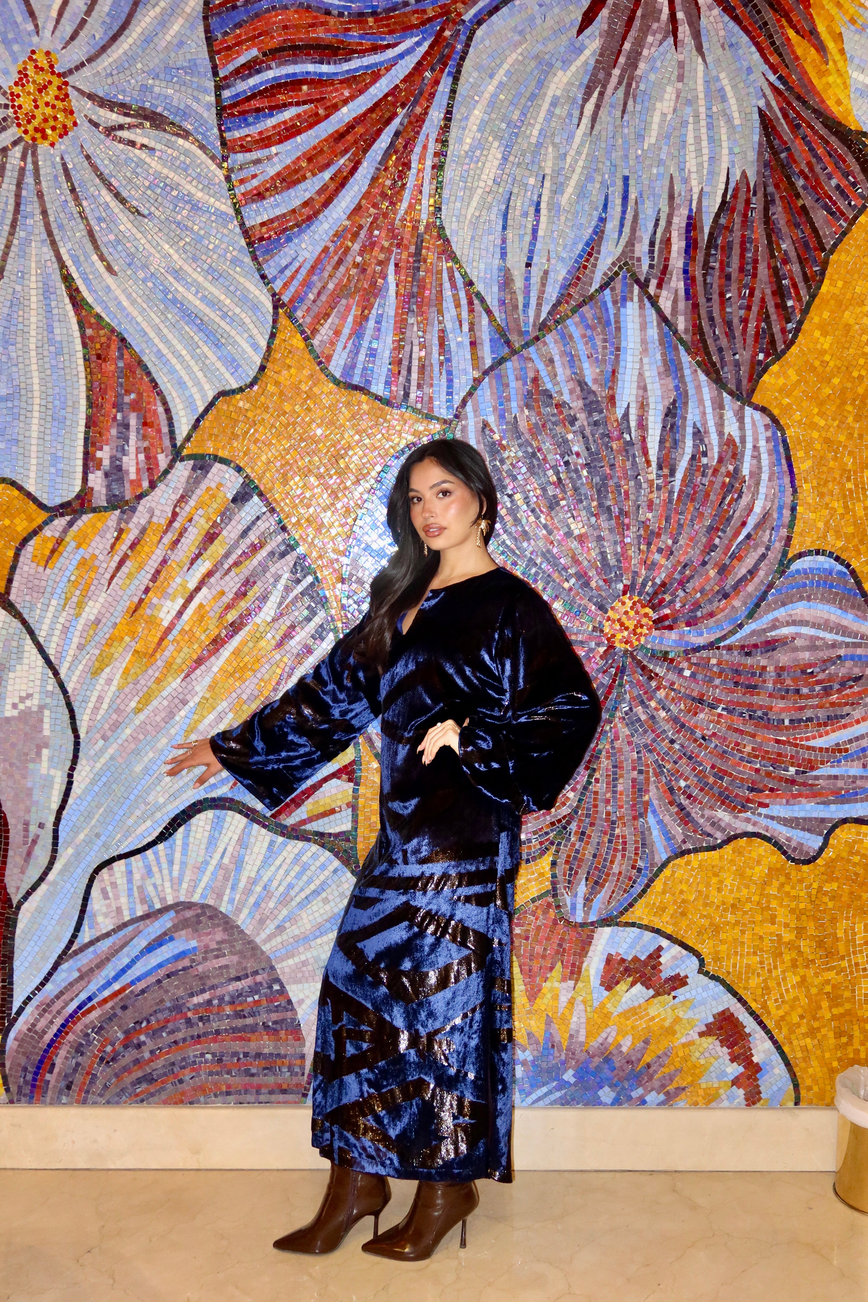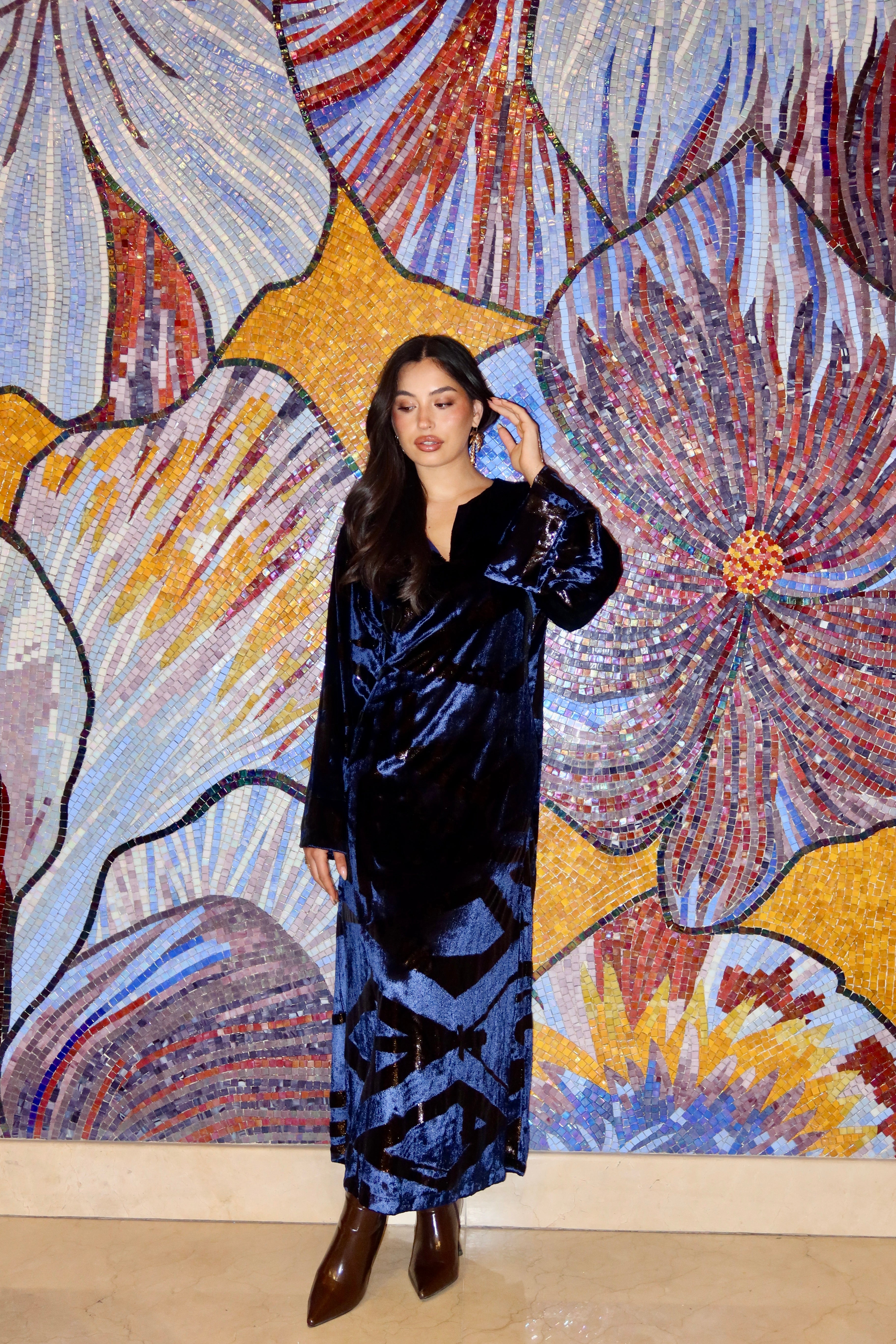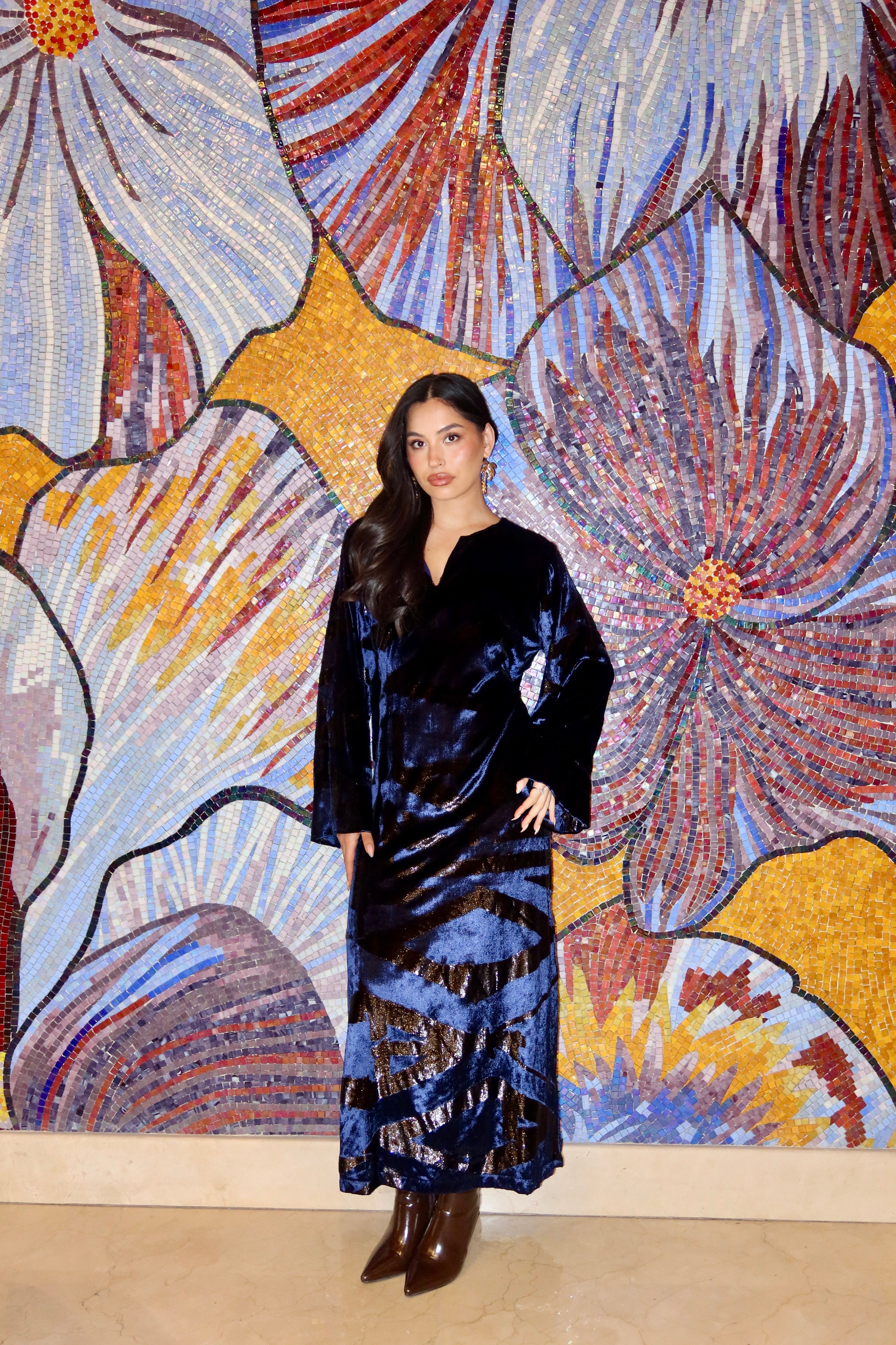 Indulge in luxury with our limited edition jasmine greige dress. Crafted from exclusive silk velvet, this piece exudes elegance and comfort. With a relaxed shape, it offers the best of both worlds - ultimate sophistication and ease. Don't miss out, quantities are limited.
