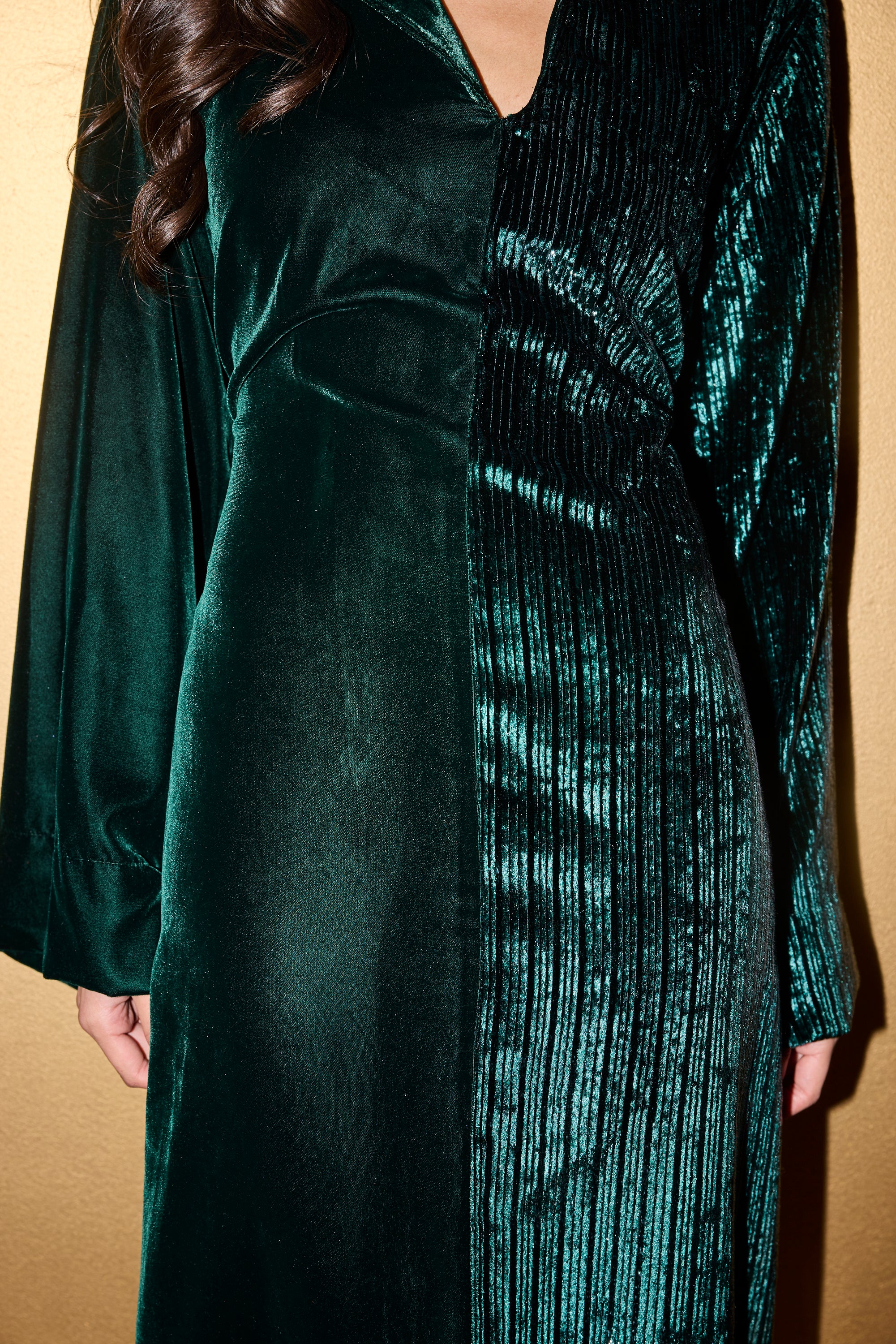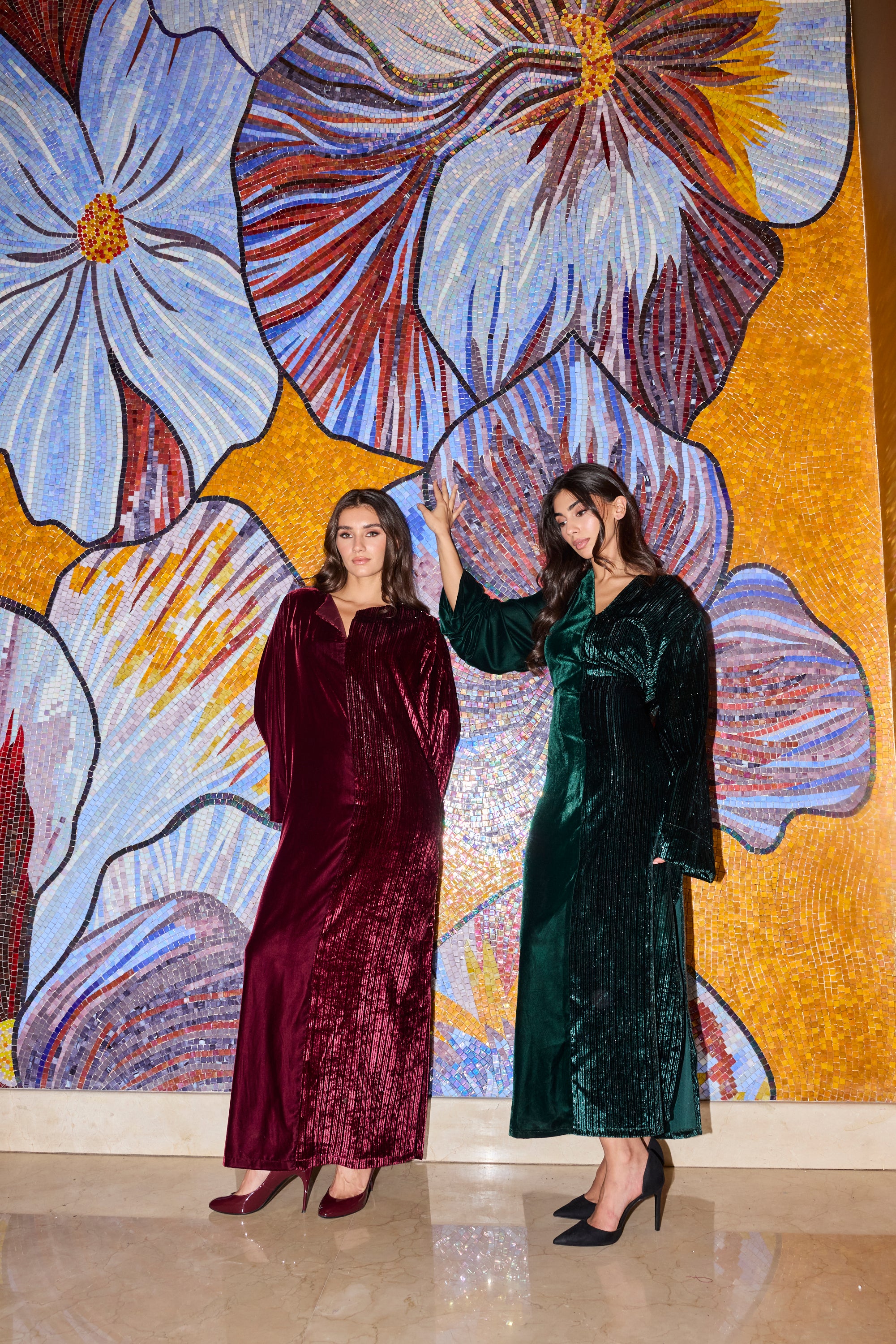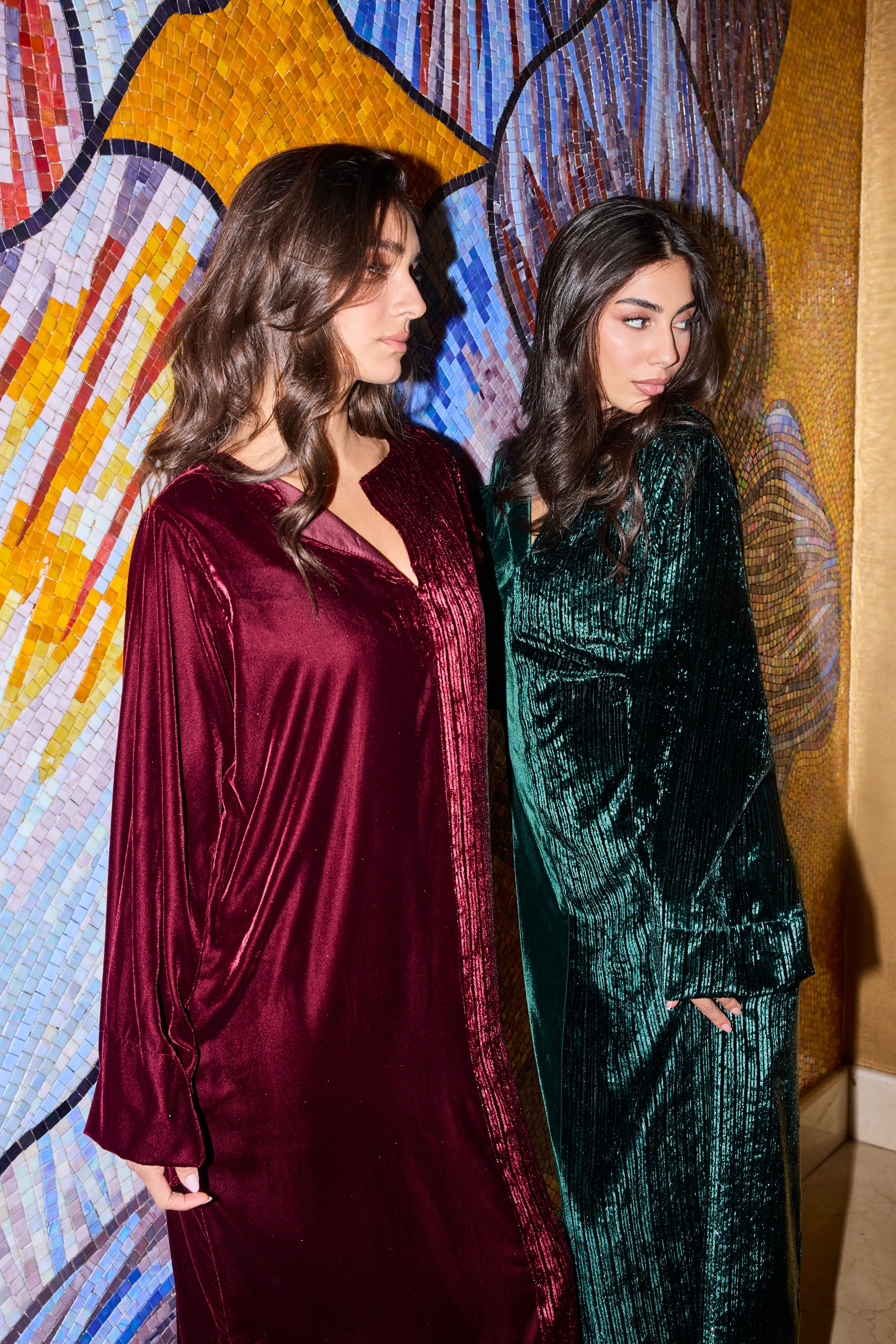 Introducing Yara, the perfect addition to any wardrobe. This half and half kaftan offers an effortless and elegant style, with one side featuring a sleek shimmer and the other a simple yet chic design. Easy to wear and versatile, this kaftan is a must-have in your closet. Comes with a hidden belt, can be worn tied for a more fitted look, or let loose for a more relaxed look.Â